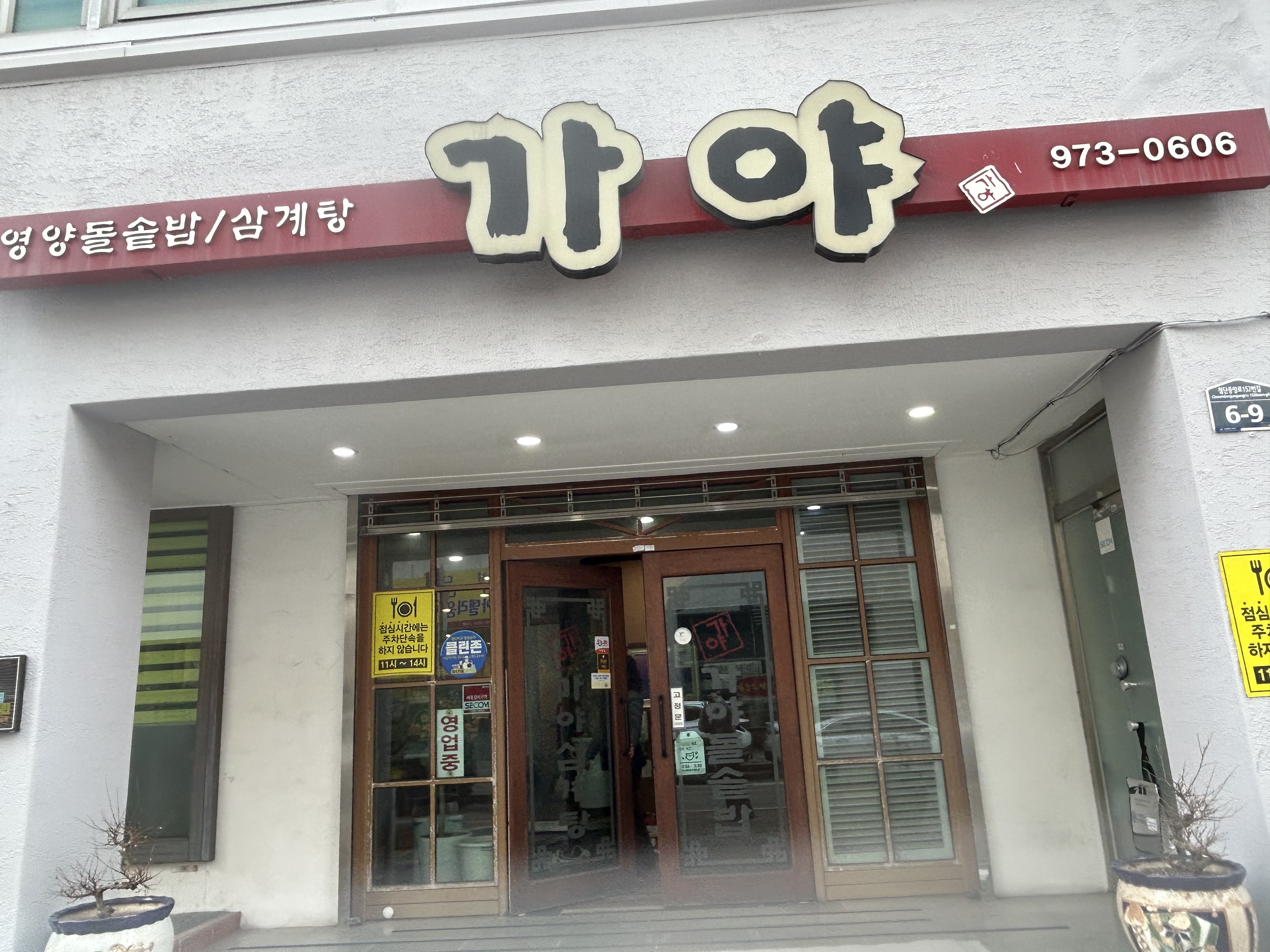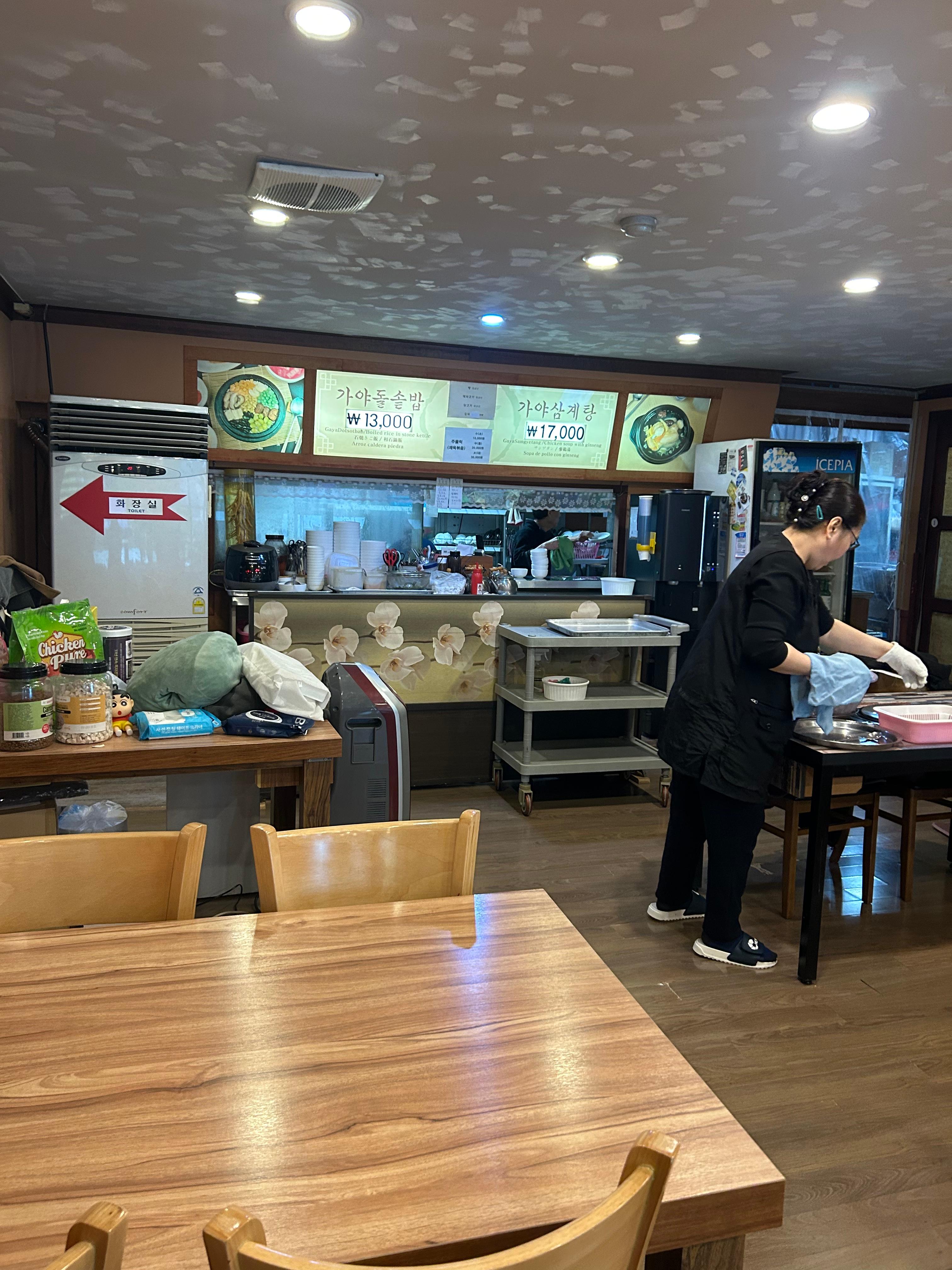 메뉴는 가야돌솥밥, 가야삼계탕이 있어요.