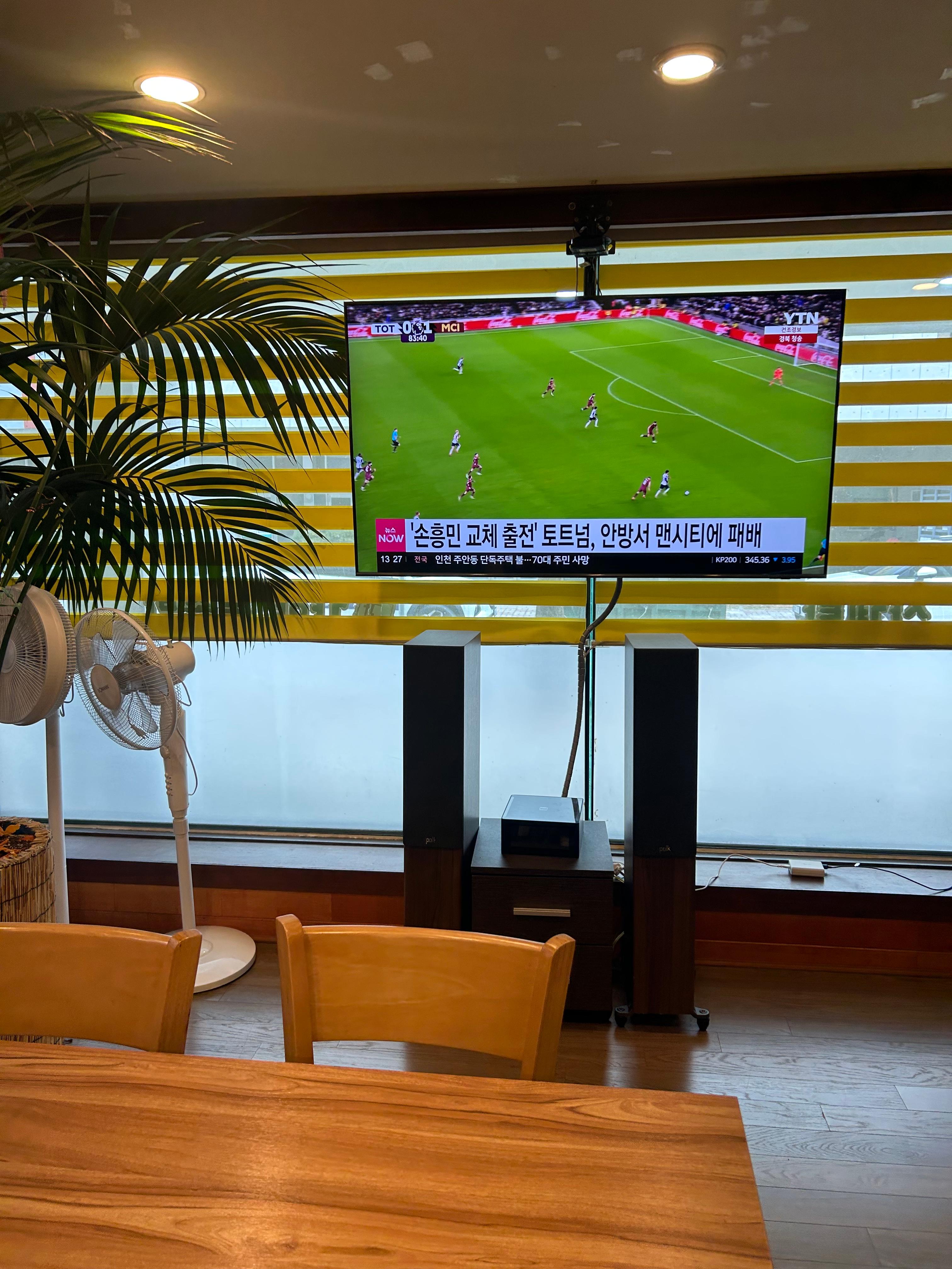 식사를 하며 가운데 티비를 보려...