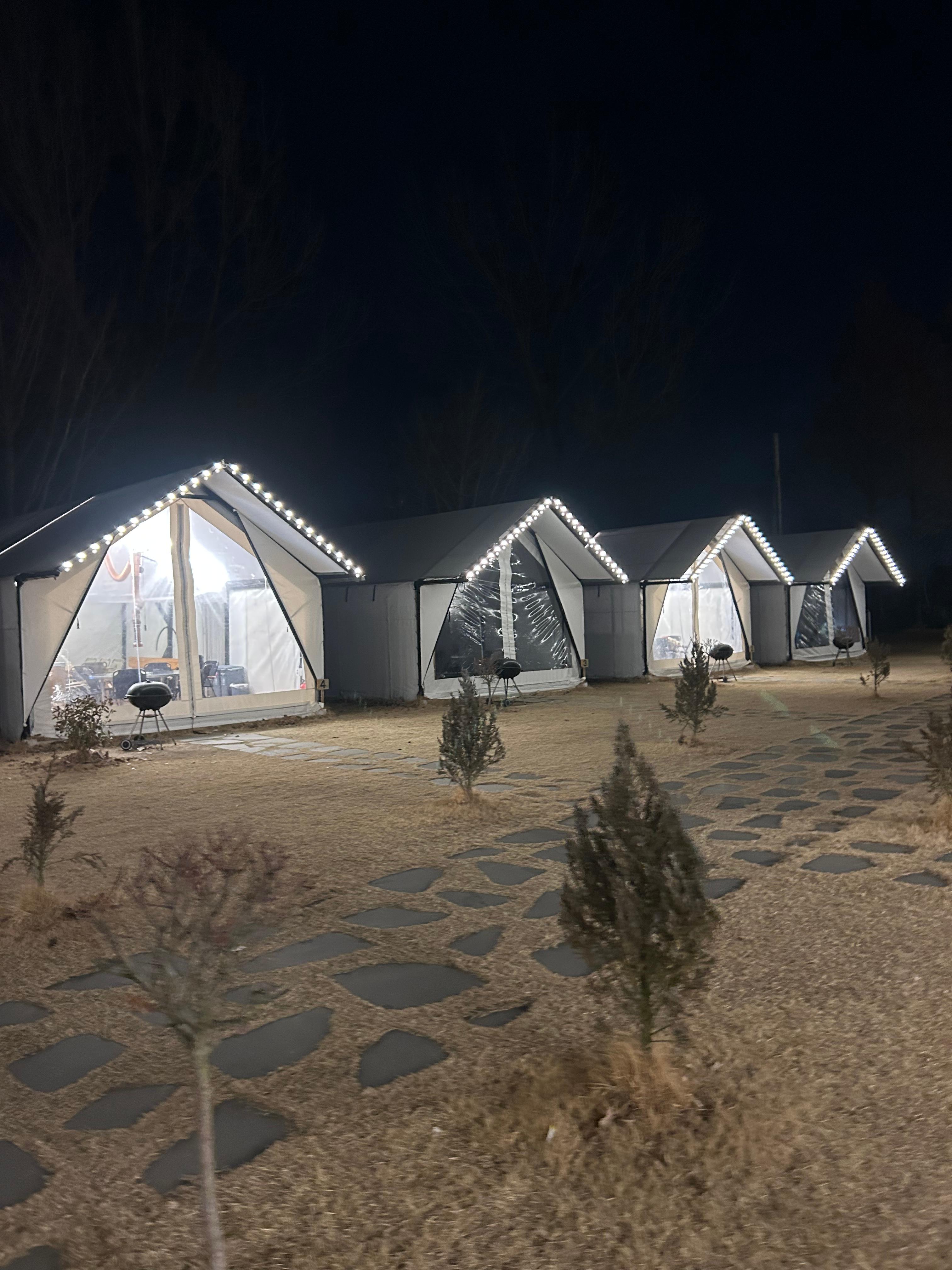 낚시터 옆은 숙박 텐트들이 주루룩 있어요.