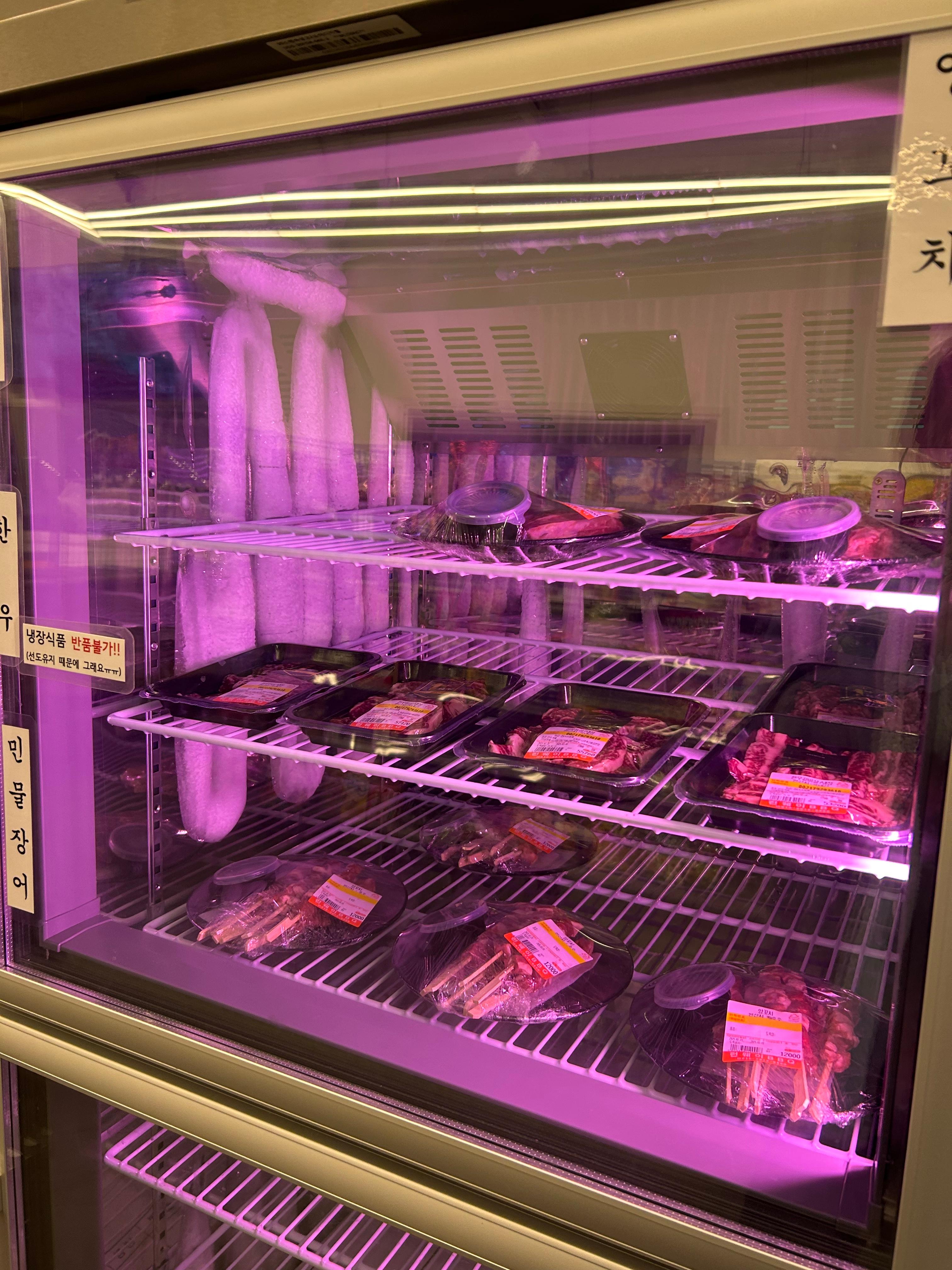 매점에 들어가면 고기 냉장고가 따로 있고,