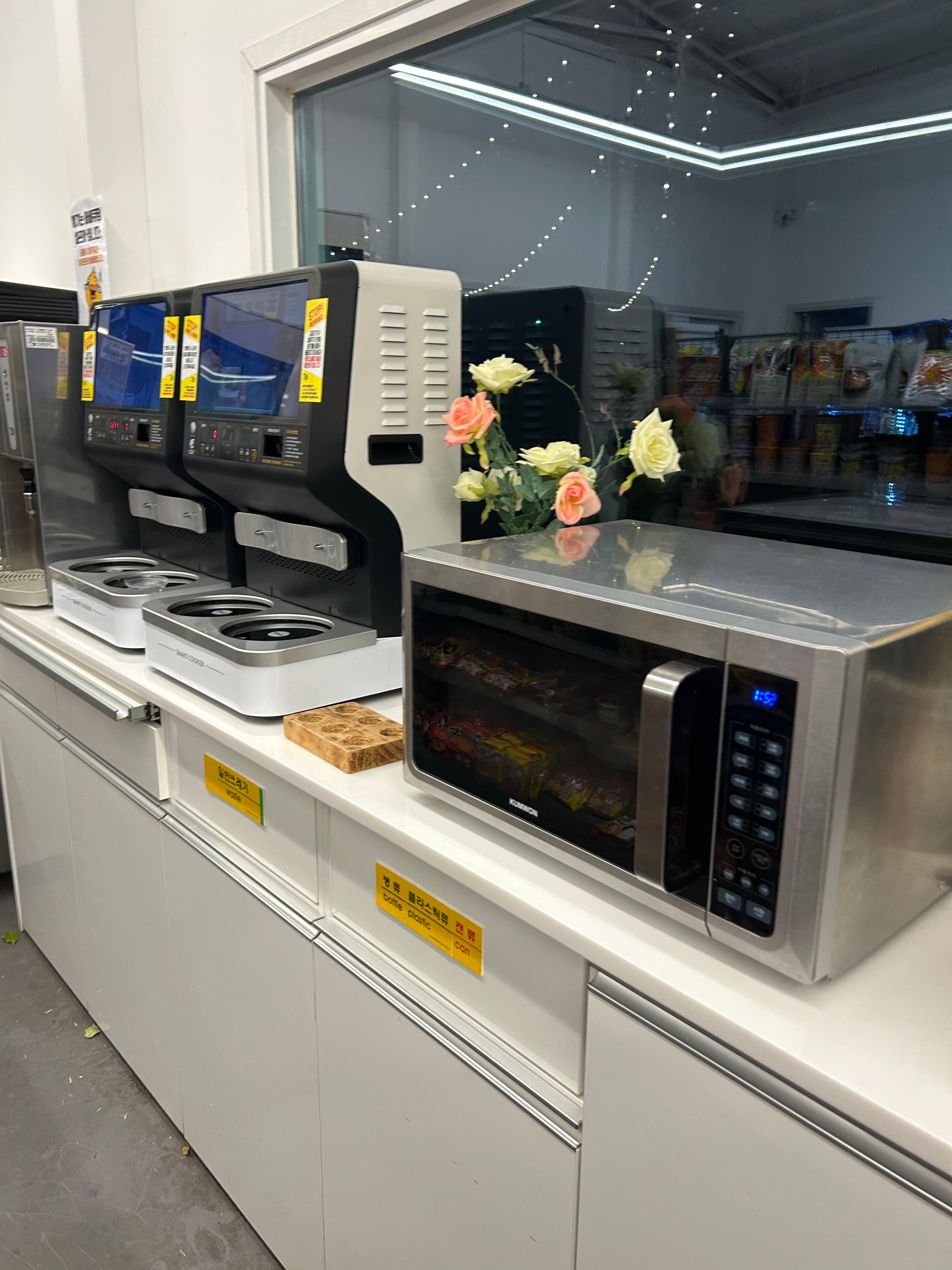 카운터에 말하고 라면 기계로 끓이시면 돼요!