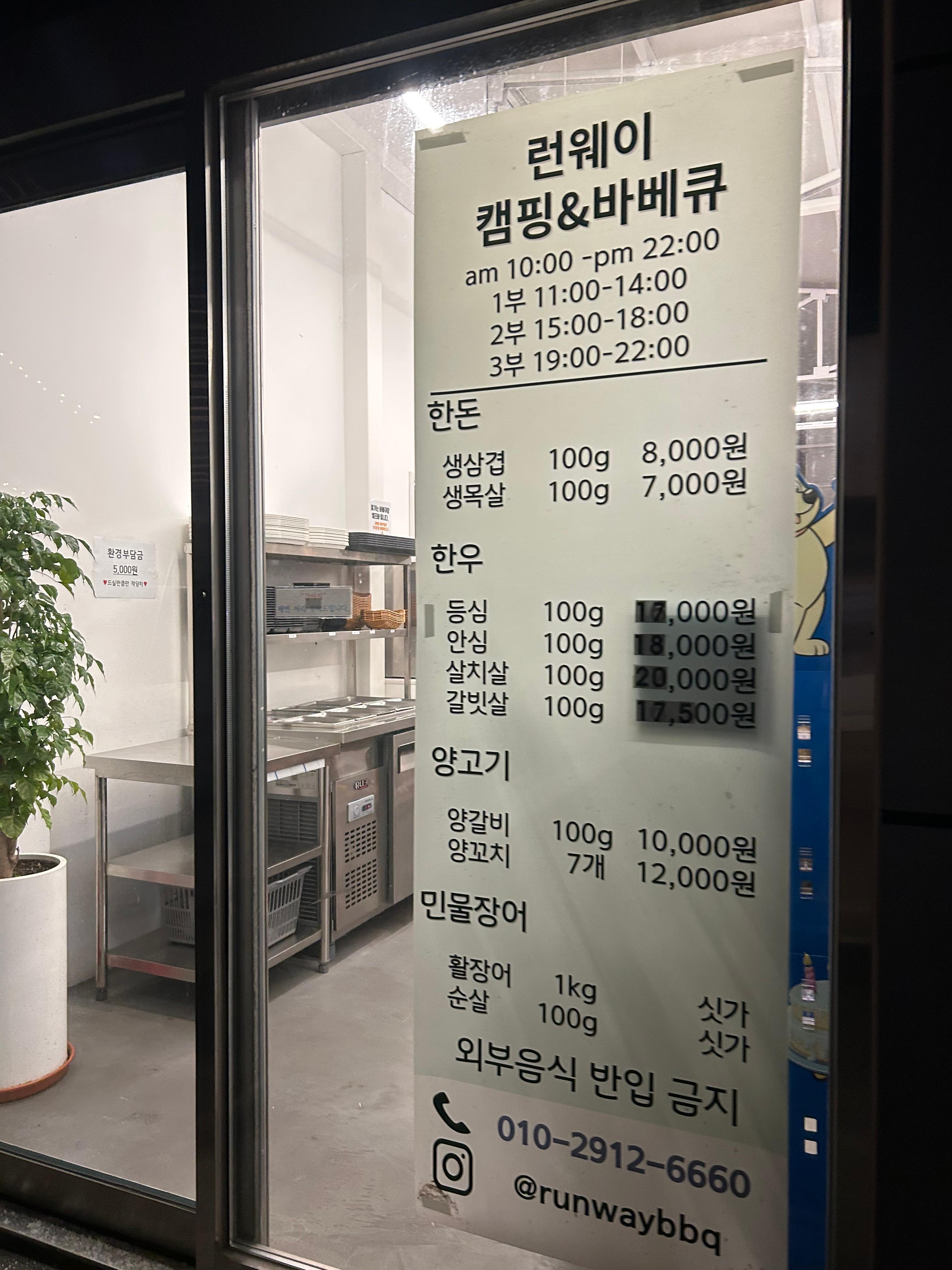바로 런웨이 캠핑&바베큐~입구부터 가격판이 보이쥬~단, 외부음식은 금지에요!
