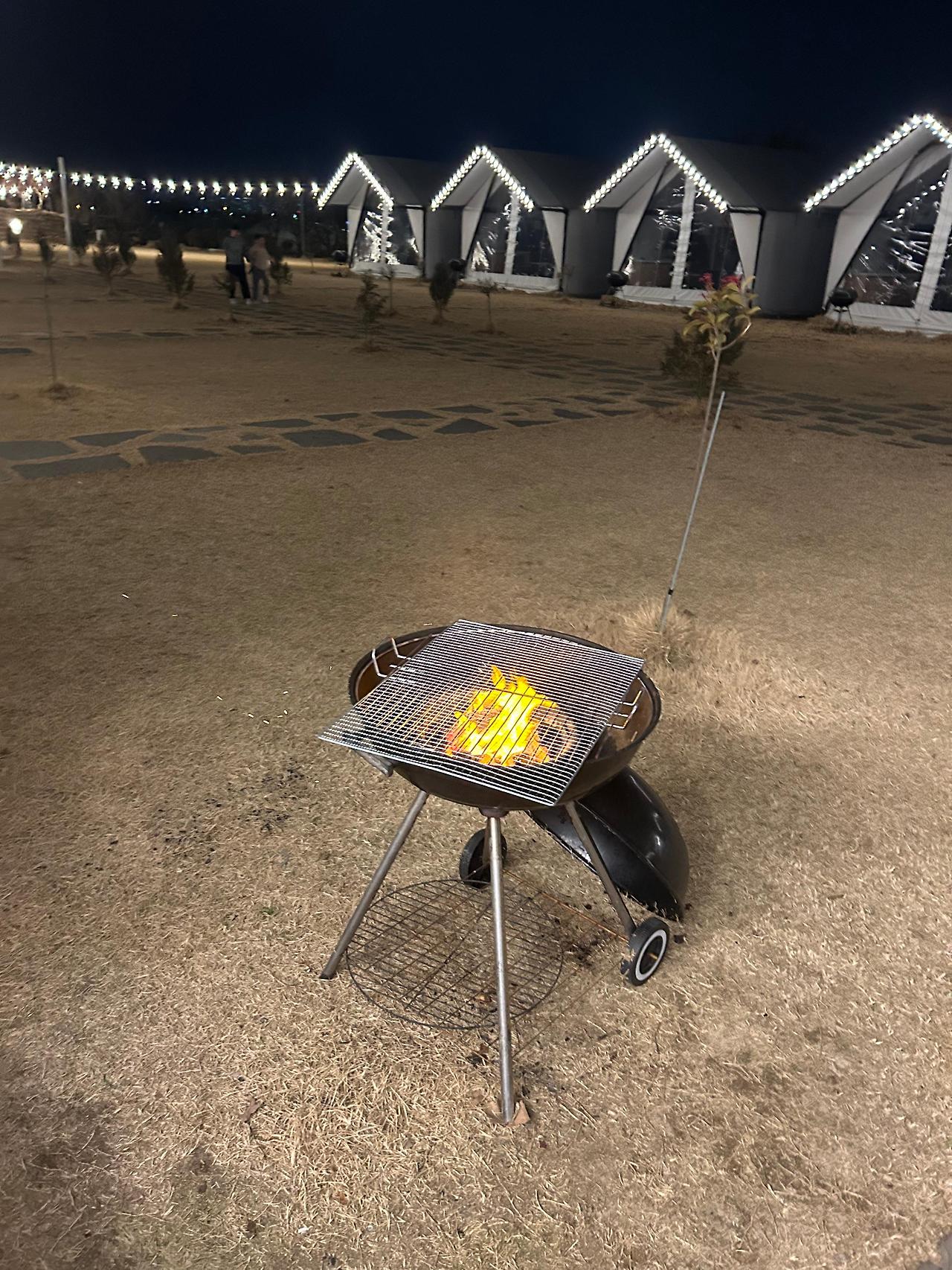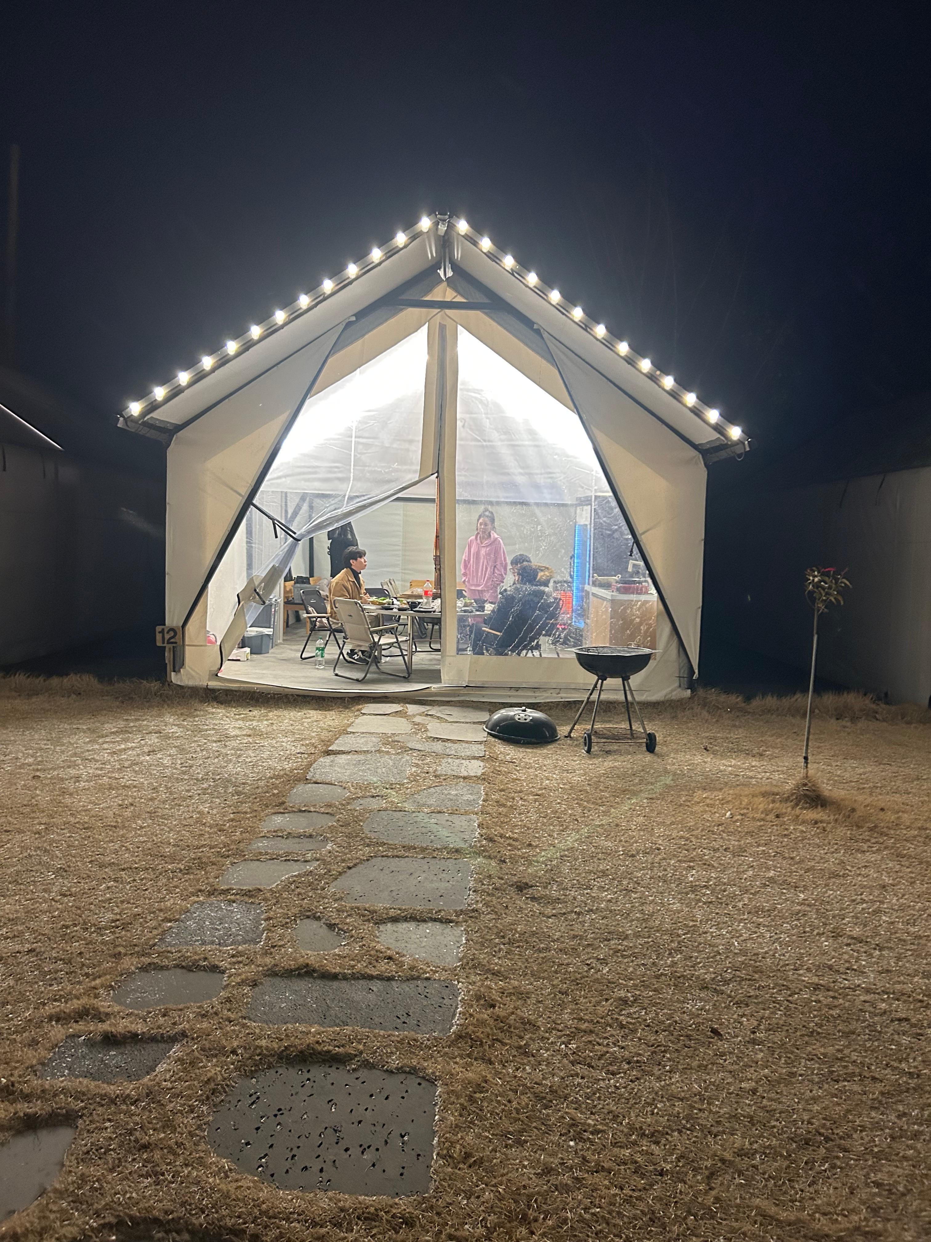 함께 온 사람들끼리만 함께 고기도 먹고 게임도 할 공간이 있어, 즐거웠어요.잔디 끝에 가면 그네도 있고, 문을 나가면 주차공간도 있고~앞 뒤 어느 쪽도 들어오기 좋았어요.광주에서 가까워서 금방 도착했구요.텐트 안의 숯불만으로는 고기굽기가 .. 너무 오래걸려요!(6명이라 그런가..)밖의 숯불도 이용해야했어요.그래도 풍경도 좋았고, 돌아다니는 고양이들도 좋았어요!