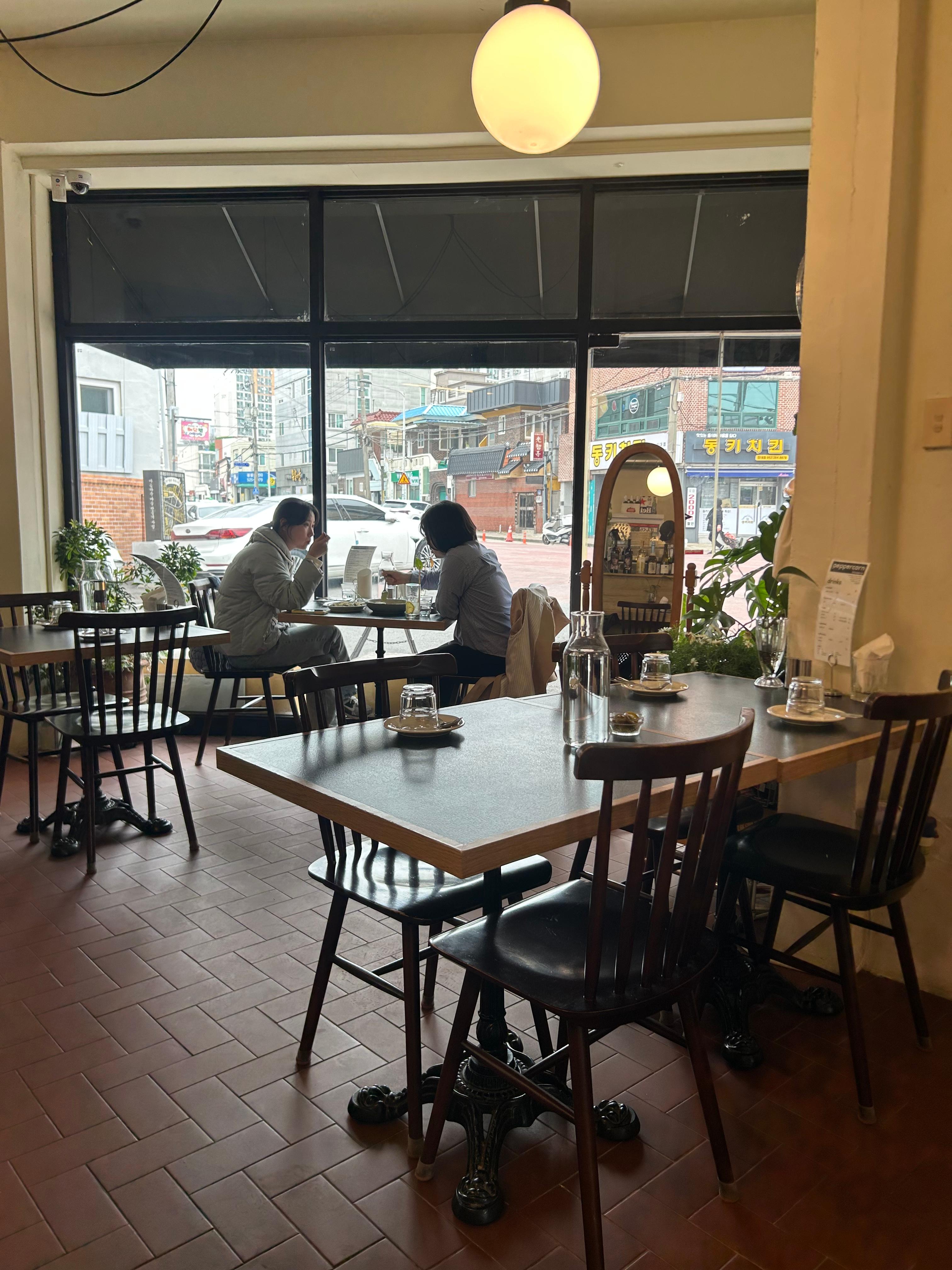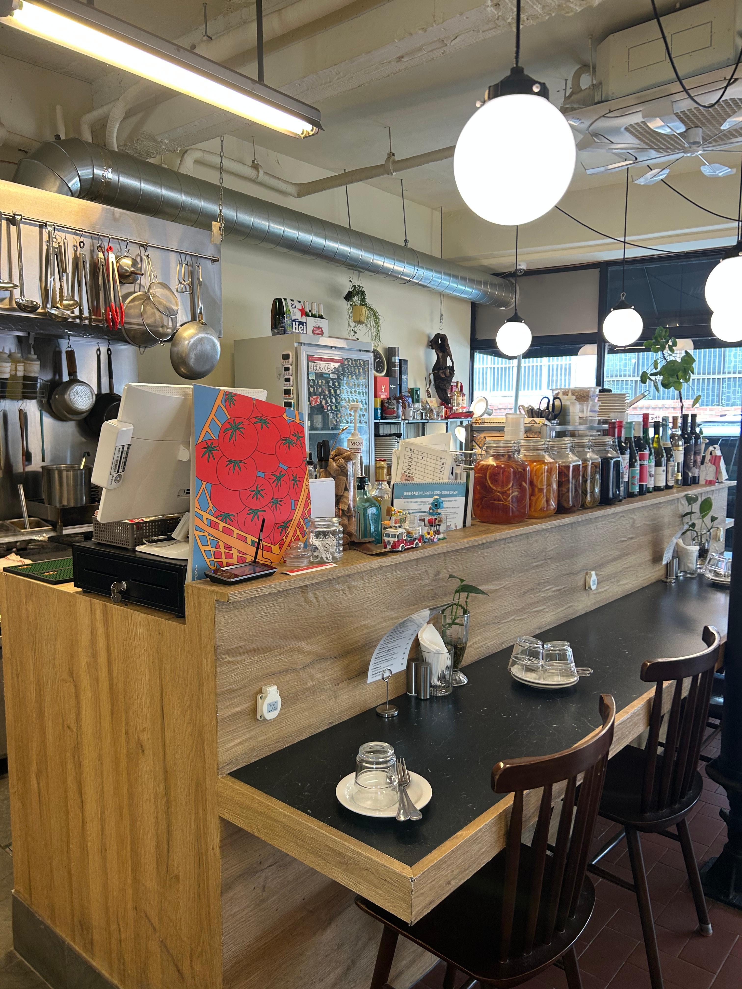 저는 왼쪽 사진의 주방을 마주보는 테이블에 앉았어요!