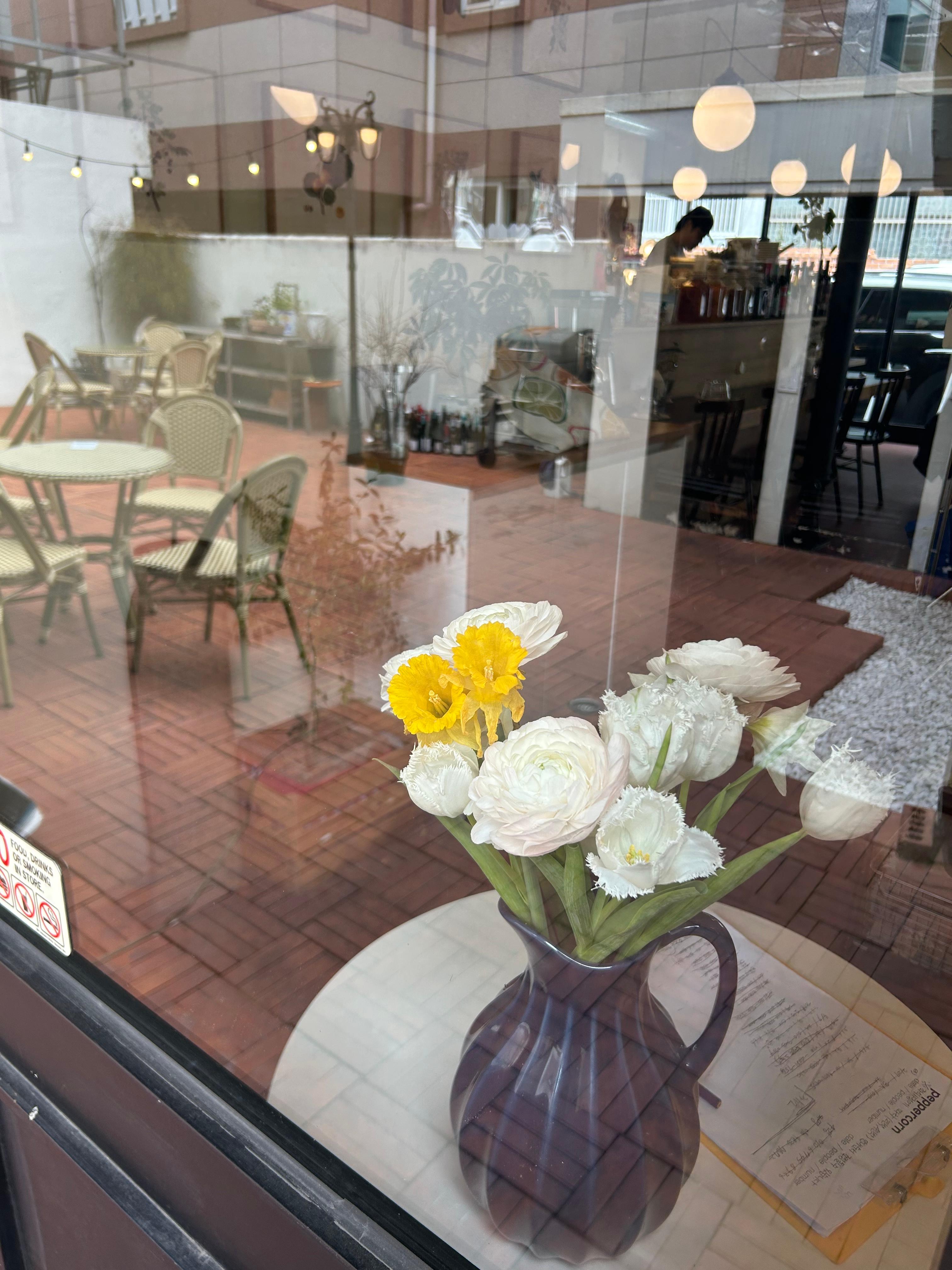 입구부터 예쁜 꽃과 함께 여러 소품이 또 있어요!