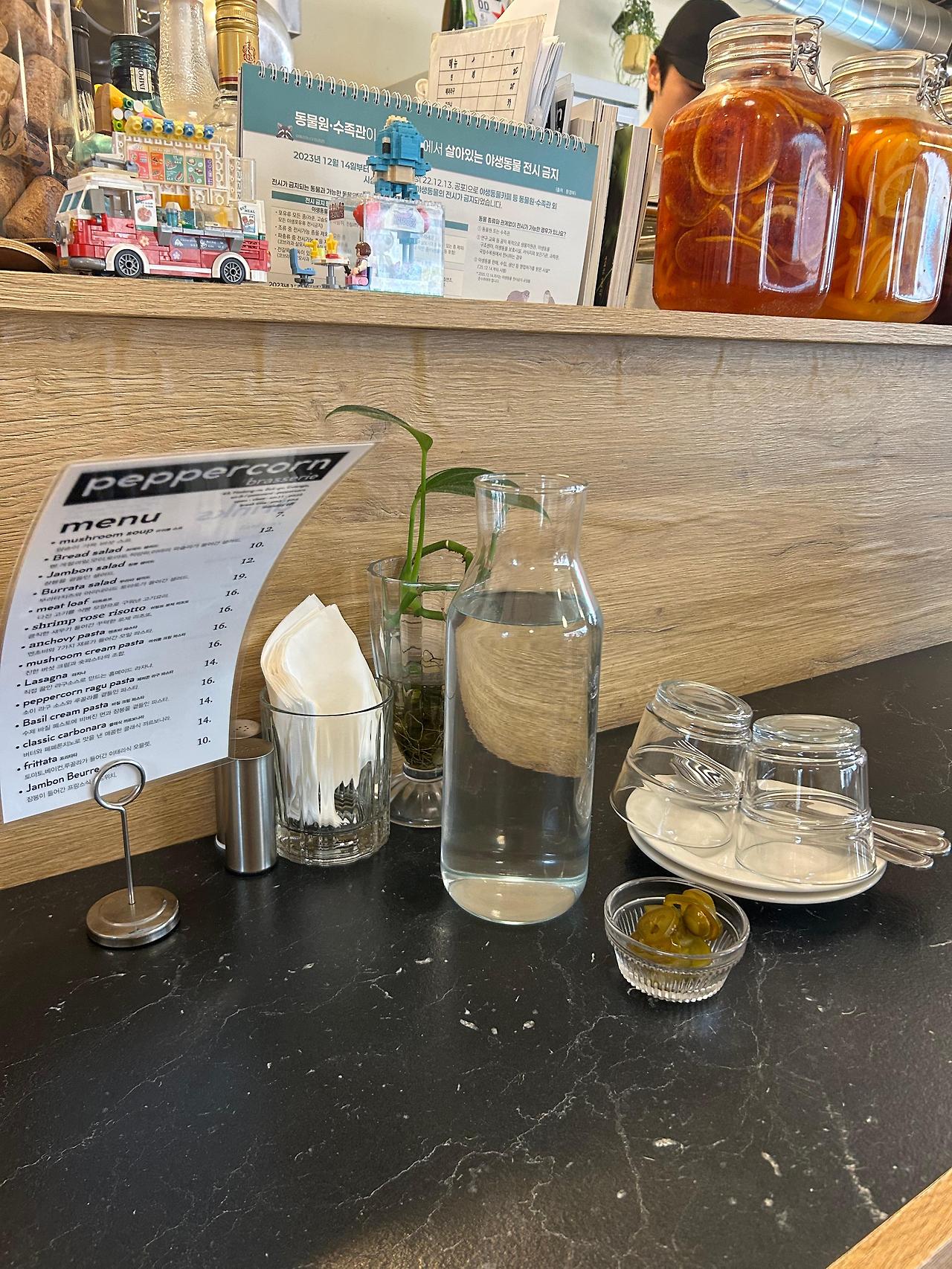 메뉴판이 자리에 고개를 푹 숙이고 있더라구요!