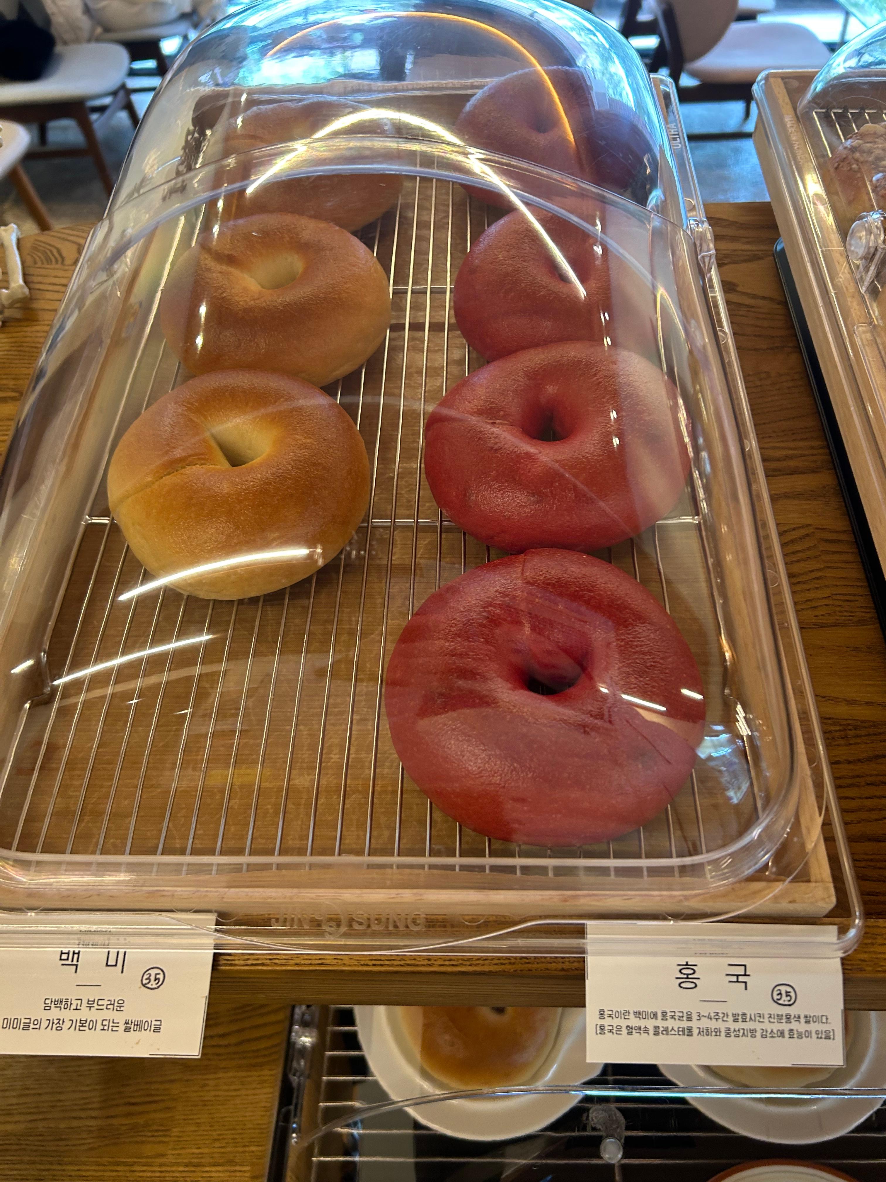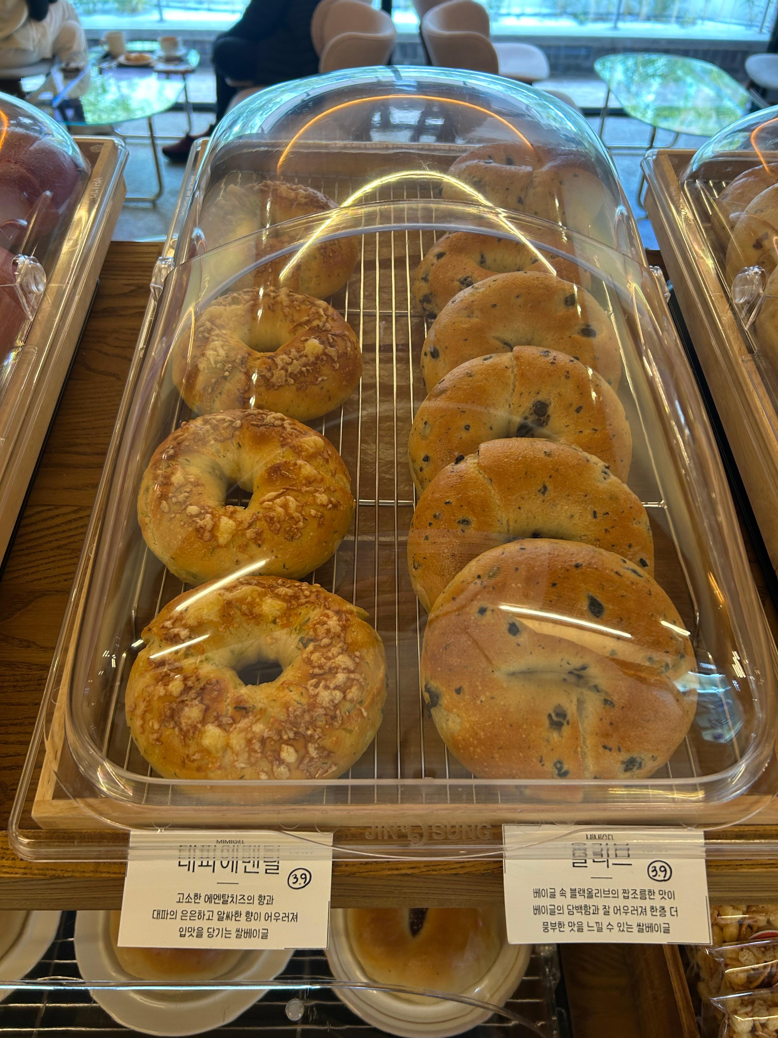 카페 한 가운데 다양한 베이글이! 있어야하지만,