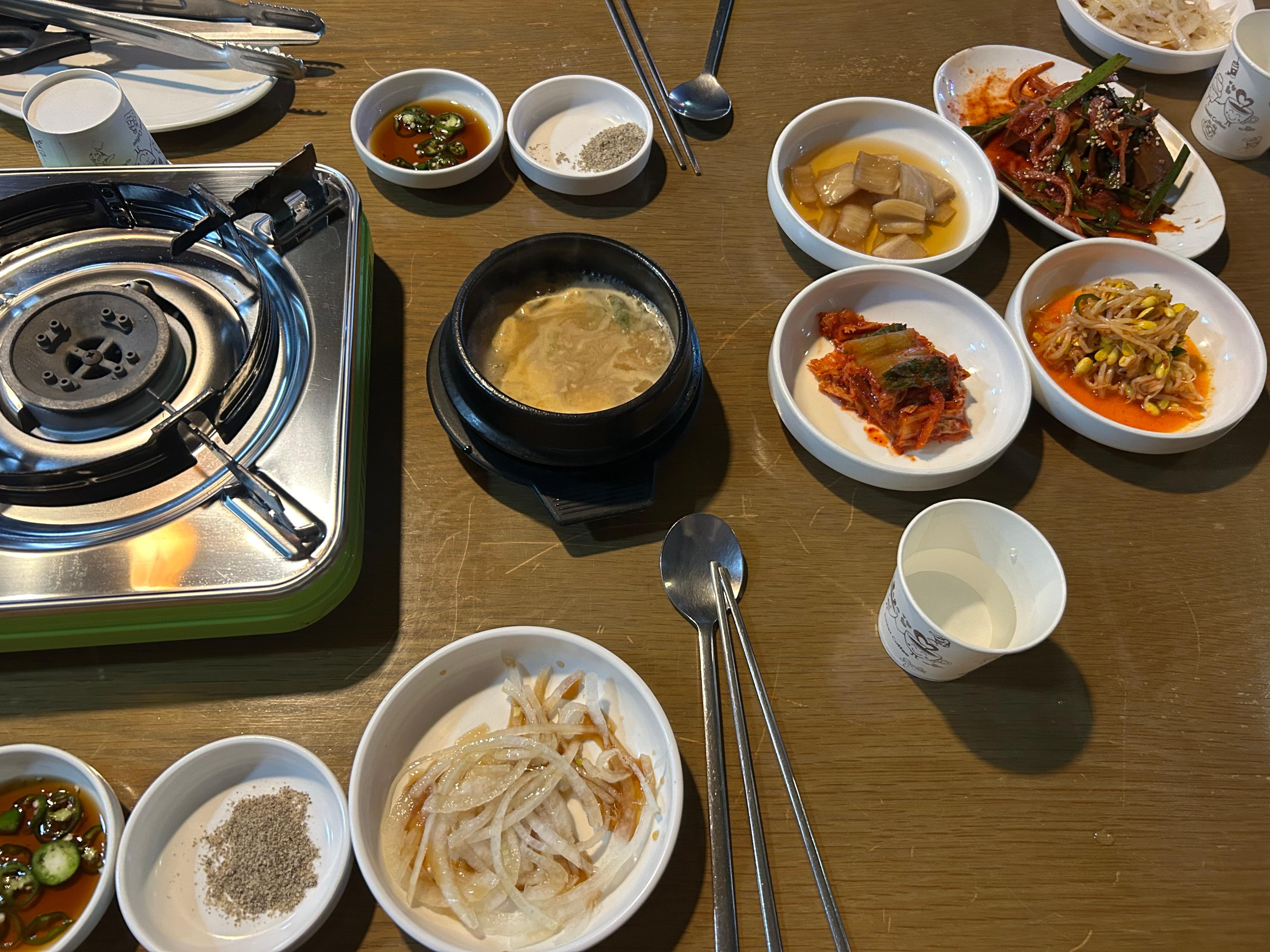 해산물 맛이 나는 된장국 등이 나왔어요~